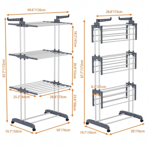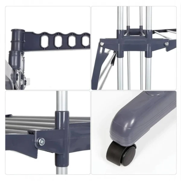 • Capacidad Familiar: 4 niveles de secado, 6 bandejas retráctiles y 2 alas laterales para perchas. ¡Seca de todo, desde calcetines hasta zapatos!